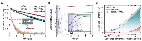 一直以来,研究人员认为将硅与金属卤化物钙钛矿结合在一起的叠层太阳能电池能够突破单电池效率极限。然而,为了实现这一目的,钙钛矿/硅叠层太阳能电池不仅需要稳定的宽带隙钙钛矿材料,同时还要求维持高效的电荷载流子输运,这为进一步开发叠层太阳能电池带来了挑战。