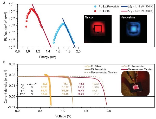 图5 具有Me-4PACz和LiF夹层的叠层太阳能电池的发光分析