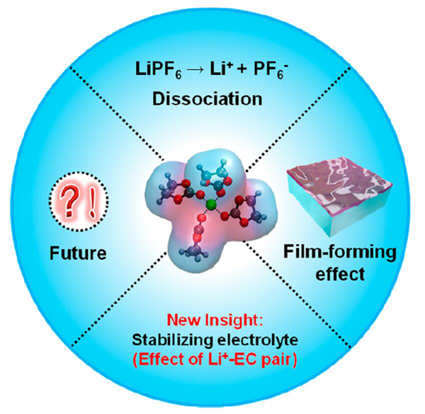 EC溶剂的常规作用包括SEI成膜作用和盐解离效应。本研究提出并详细分析了EC在抑制电解质分解中的新作用。
