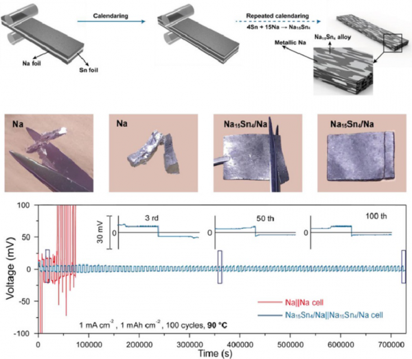 Enhanced processability and electrochemical cyclability of metallic sodium at elevated temperature using sodium alloy composite. Energy Storage Materials 2020. DOI: 10.1016/j.ensm.2020.11.015