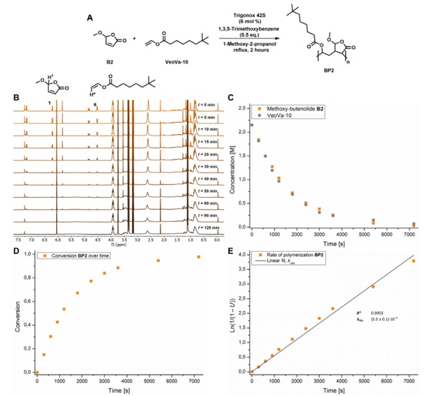 (A)甲氧基丁烯内酯B2与VeoVa-10(1:1比例)的共聚合,然后进行1H NMR分析