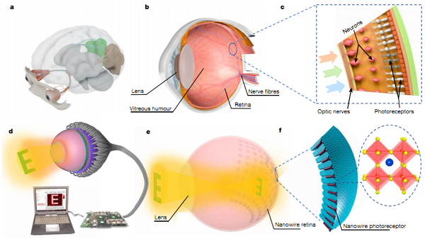 香港HTH官网地址 大学范智勇提出了一种具有半球形视网膜的电化学眼,该眼球是由高密度的纳米线阵列构成的,该纳米线模仿了人类视网膜上的感光器。该设备设计与人眼具有高度的结构相似性,当对单个纳米线进行电寻址时,具有实现高成像分辨率的潜力。此外,作者通过重构投影到设备上的光学图案来演示仿生设备的图像感应功能。这项工作可能会导致仿生光敏器件可以在广泛的技术应用中使用。