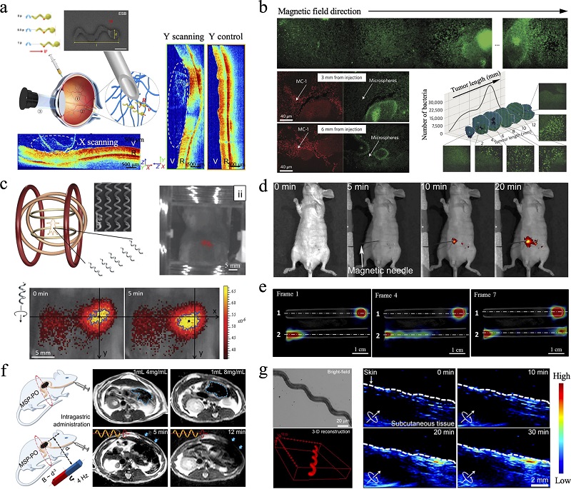 (a)螺旋型微机器人在OCT引导下在眼球中运动;
