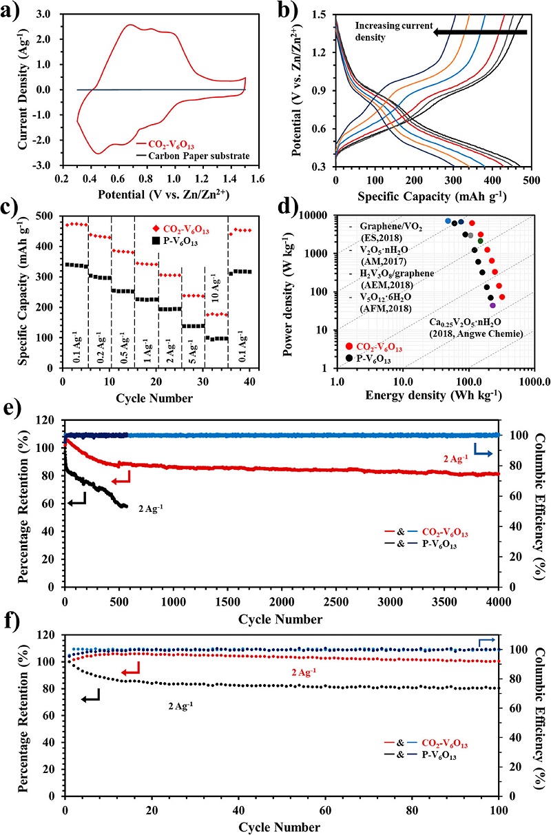 图三、Zn//CO2-V6O13电池的性能