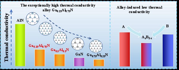合金化过程通常由于引入不同的原子而导致热导率的降低,然而二维GaxAl1-xN合金在一定比例下可以具有相对较高的热导率,这种现象打破了传统的认识,对合金热导率的研究做出了扩展和延伸。