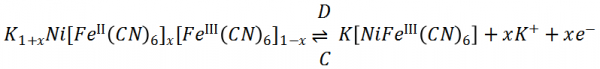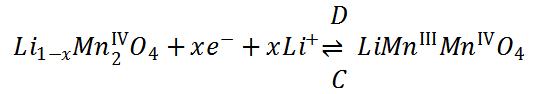 本研究中我们选用了锰酸锂(lithium manganese oxide, LMO)和亚铁氰酸镍(nickel hexacyanoferrate ,NiHCF)作为电极来证明TO-TREC技术的可行性。TO-TREC系统包含两个主要的过程,即高温放电提取锂和低温充电释放锂两个过程。高温放电过程中,含锂的原水首先被低品质热源加热。以疏水多孔的聚偏氟乙烯(PVDF)膜作为核心的热渗透系统利用温差作为驱动力,对含锂原水进行浓缩,同时产生纯水。LMO电极从高温浓缩后的含锂原水中选择性捕获锂离子,同时NiHCF电极释放出钾离子以平衡原水中的电荷。这个过程是一个自发放电的过程,LMO/NiHCF组成的化学电池可在该过程中释放电能。在低温充电过程中,LMO和NiHCF电极从高温原水中取出,放入低温(常温)的锂回收溶液中(氯化锂和氯化钾的混合溶液)。通过充电操作,LMO电极上嵌入的锂离子会被重新释放到溶液当中,与此同时溶液中的钾离子嵌入NiHCF电极中。如此循环,最终将原水中的锂离子提取到回收溶液中。涉及到的电化学反应如下 (D代表放电,C代表充电):