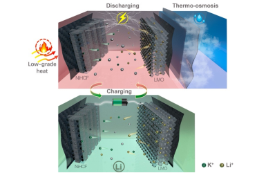 另一方面,该技术在提取水中的锂的同时,其在高温下放电,在低温下充电的操作过程正好构建了一个电化学再生循环(TREC)。即对于温度系数是正的化学电池系统,因其电池电压随着温度升高而升高,所以通过高温下的放电过程能够释放出更多的电能,从而减少整个电化学提取锂过程的电能消耗。而我们选择LMO/NiHCF化学电池系统作为研究对象的其中一个重要的原因是其温度系数为正,可以在提取锂的操作过程当中实现上述是低品质热能转化为电能的效果。因此,本研究中所提出的TO-TREC系统具有以下几点优势:(1)可利用低品质热能浓缩含锂原水;(2)节省电能;(3)更高效的实现水中锂的提取;(4)纯水作为附加产品产出。