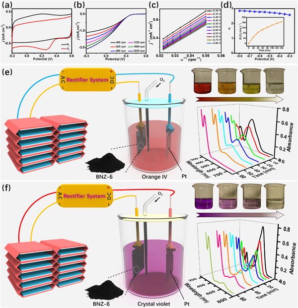 (a)BNZ-6在pH = 2.0的饱和N2和O2的Na2SO4溶液中的CV曲线。