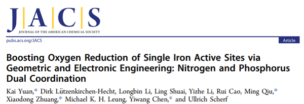 Boosting Oxygen Reduction of Single Iron Active Sites via Geometric and Electronic Engineering: Nitrogen and Phosphorus Dual Coordination. J. Am. Chem. Soc. 2020, 142, 5, 2404-2412. DOI: 10.1021/jacs.9b11852