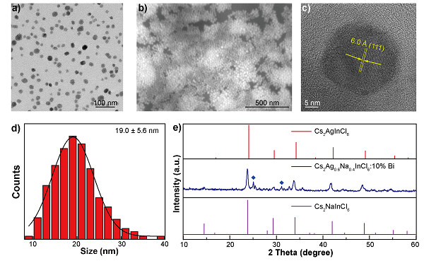 图1. Cs2Ag0.6Na0.4InCl6 :10% Bi纳米晶的物相表征。