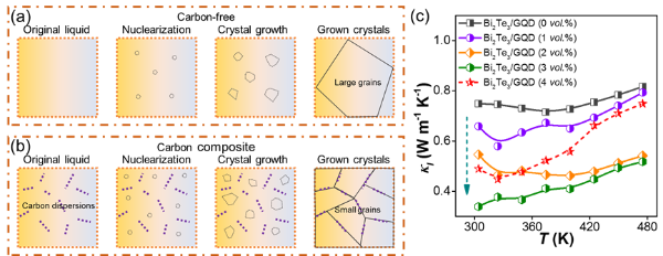 c)墨烯量子点和Bi2Te3原位复合对材料晶格热导的影响。
