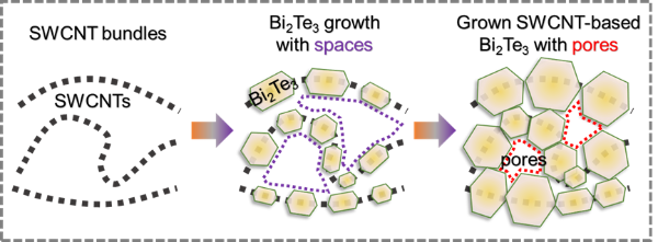 图10. Bi2Te3/单壁碳纳米管复合形成纳米孔示意图