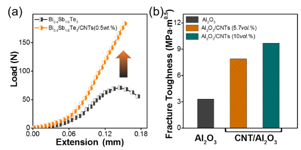 b)碳纳米管复合提高Al2O3的断裂强度。