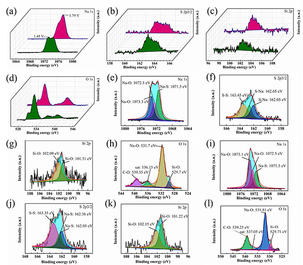 (i-l)在1.79V时,Na 1s、S 2p 3/2、Si 2p和O 1s的XPS图谱。