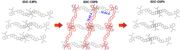 图2. 单晶解析与分子堆积方式(烷基链隐藏)