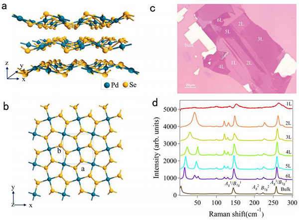 (a)具有褶皱五边形的PdSe2薄片的晶格结构;