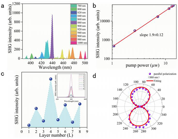 (b)在4 L PdSe2中,SHG强度与激发功率的关系;