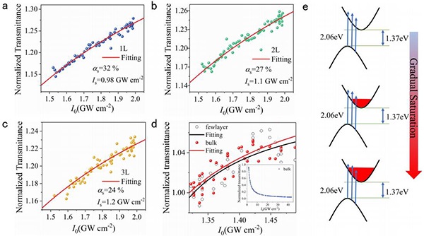 图六、1-3 L和块状PdSe2薄片的SA特性