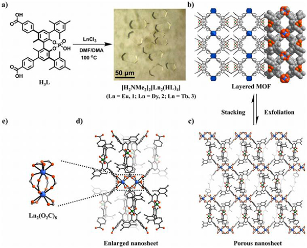 (a)Ln-MOFs的合成和无色多面体晶体的显微镜图像;