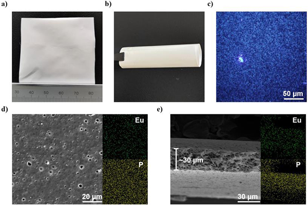 (c)紫外光照射下(S)-1-MONs-MMM(5.0 wt %)的荧光照片;