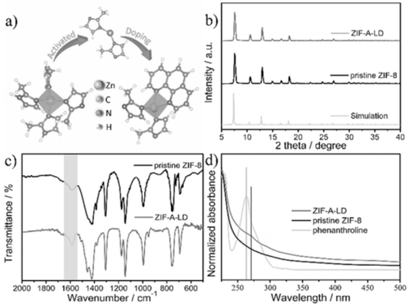 图9 邻二氮杂菲掺杂ZIF-8的结构及其表征[9]
