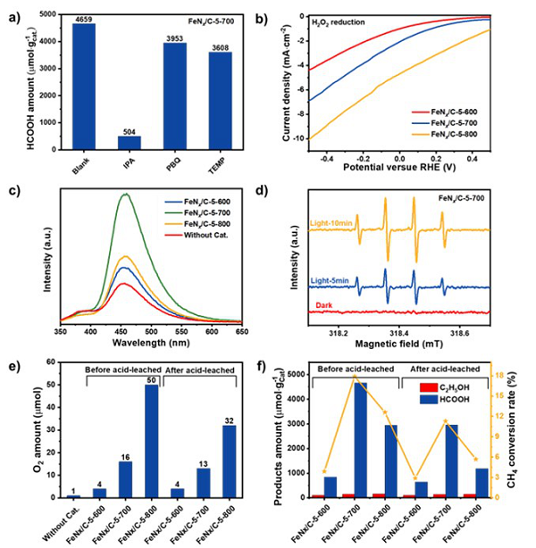 图1. FeNx/C碳基光催化剂的性能调控及产物分布