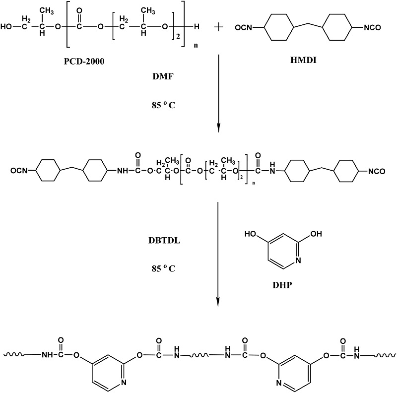 图二、聚氨酯-2,4-二羟基吡啶(PU-DHP)的合成路线