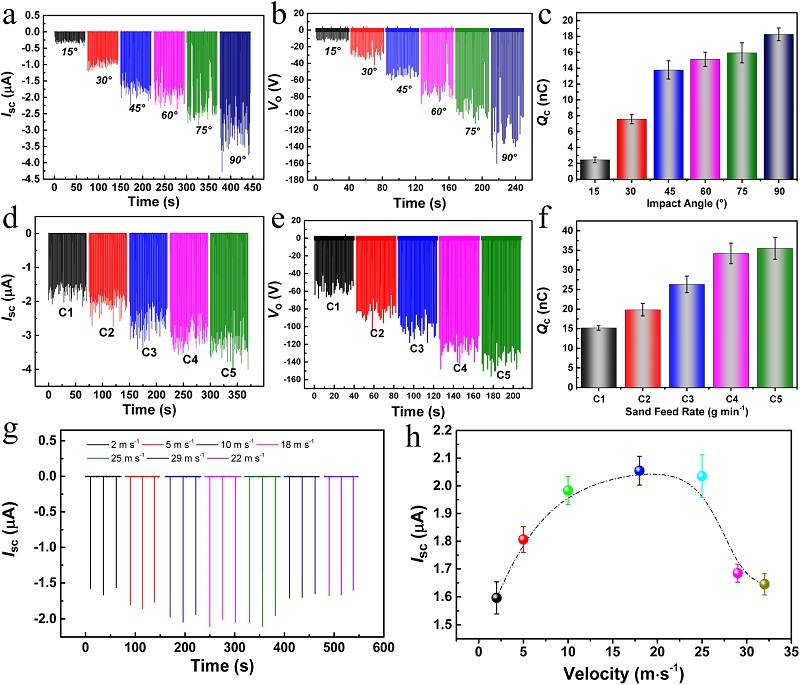(g)具有不同风沙流速时WS-TENG的Isc;