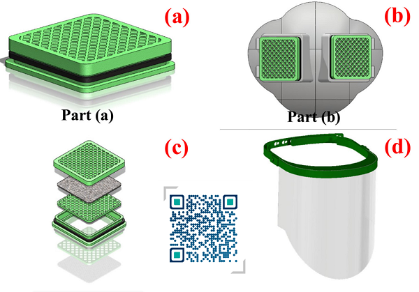 新型冠状病毒经人传给人的主要途径是通过吸入呼吸道飞沫。设计防护技术来阻止含有病毒颗粒的气溶胶扩散,是遏制疫情持续爆发的关键要求。然而,目前使用的几代防护性呼吸面罩的设计并不完善,需要开发更先进的产品,具有更高的阻塞效率和杀灭捕获的细菌和病毒的能力。其中一个设计灵感很可能来自纳米技术。这项研究描述了来自埃及的新型设计,利用可重复利用,可回收,可定制,抗菌和抗病毒的呼吸面罩实现可行的大规模生产。该新颖设计基于过滤系统,该过滤系统由包含铜氧化物纳米颗粒和石墨烯氧化物纳米片的聚乳酸和乙酸纤维素的纳米纤维基体组成,并使用静电纺丝技术生产。同时,由热塑性复合材料制造的平坦的图案用于提供与面部的贴合。
