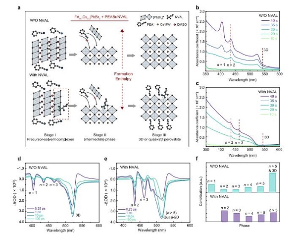 图1.“反溶剂辅助”法制成的大面积准二维钙钛矿薄膜的表征