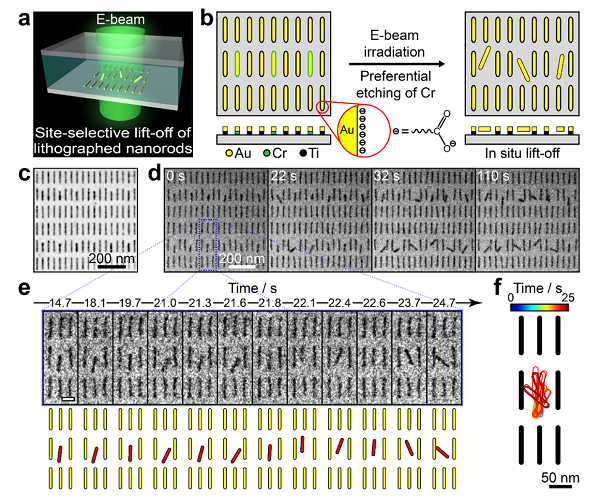 对纳米尺度相互作用的定量理解的先决条件是利用纳米粒子系统显著的集体特性。在这里,加州大学伯克利分校A. Paul Alivisatos教授等人报告了结合使用液相透射电子显微镜和电子束光刻技术来阐明预先定义的势能景观中带电纳米棒之间的相互作用。表面功能化光刻金纳米棒的原位选择性剥离是通过以不同速率蚀刻的粘附层材料来实现的。分析随后的纳米棒运动,由于粒子与衬底之间的吸引力,该结构在二维上受到限制,可以在光刻工程环境中量化粒子间的相互作用。对于用相同的粘附层制成的平版纳米棒,它们的自组装行为可以通过改变它们的起始空间排列来调整。该研究的方法有助于研究设计的纳米粒子系统中粒子间的相互作用,并对势能景观在确定纳米粒子自组装动力学途径中的作用提供了基本的见解。相关研究以“In Situ Quantification of Interactions between Charged Nanorods in a Predefined Potential Energy Landscape”为题目,发表在Nano Letters上。DOI: 10.1021/acs.nanolett.0c04198
