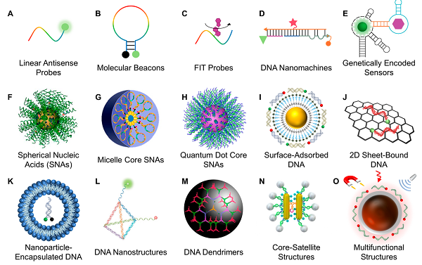 基于DNA的探针由于能够识别核酸和非核酸靶点、易于合成和化学修饰、易于与信号放大方案接口以及固有的生物相容性,构成了一个多功能的生物测量平台。在这里,美国西北大学Chad A. Mirkin教授等人提供了从线性DNA结构到结构更复杂的纳米结构的转变如何彻底改变活细胞分析的演变视角。调节结构产生的探针可以不借助转染试剂进入细胞,并可以在单细胞器、单细胞、组织切片和整个有机体水平上检测、跟踪和量化活细胞中的分析物。研究描述了不同探针体系结构的优点和缺点,并描述了这些结构在阐明基础生物学以及开发改进的诊断和治疗系统方面所带来的进展。还讨论了该领域的突出挑战,并概述了潜在的解决方案。相关研究以“DNA-Based Nanostructures for Live-Cell Analysis”为题目,发表在JACS上。DOI: 10.1021/jacs.0c04978