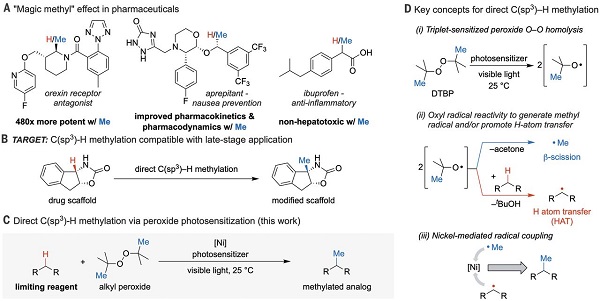 图1 通过光化学活化过氧化物实现C(sp3)–H甲基化