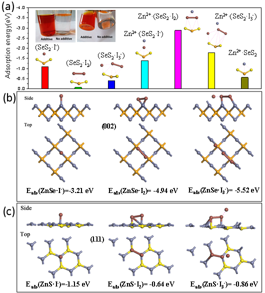 b)I–, I2和I3–在ZnSe上的吸附能;
