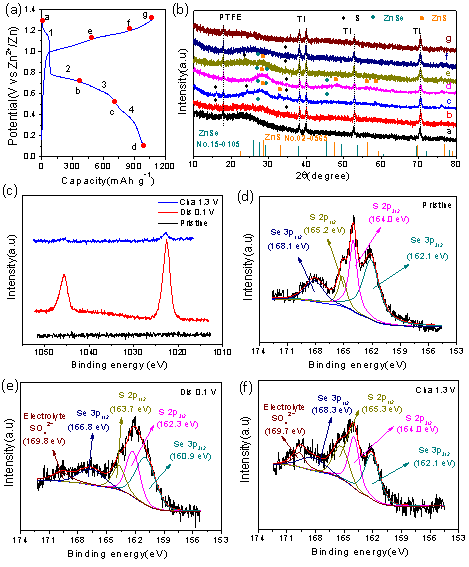 e)放电状态下SeS2@PCS中S+Se的XPS图谱;