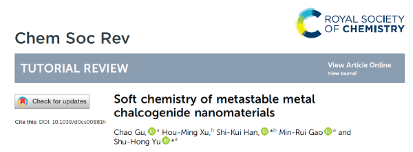 在这篇综述中,中国科学技术大学俞书宏院士课题组介绍了基于MCNs的亚稳特性对纳米材料的结构和功能进行调控,提出了利用软化学方法合成和修饰亚稳态MCNs的设计原则和转化规律。首先,作者简要讨论了MCNs亚稳特性的具体表现形式,如离子的迁移和空位、热不稳定性和结构不稳定性、化学反应活性和晶相转变。然后,针对MCNs不同的亚稳特性,设计了相应的软化学反应路径,包括离子交换、催化生长、分离或耦合、模板嫁接或化学转化以及晶相的稳定或构建。随后,作者重点介绍了利用以上设计原则和转化规律对亚稳态MCNs进行合成、修饰和功能化的最新进展。最后,对基于MCNs软化学调控的未来发展进行了展望,提供了这个领域主要存在的挑战及机遇。该成果以题为“Soft chemistry of metastable metal chalcogenide nanomaterials”发表在Chem. Soc. Rev.上。