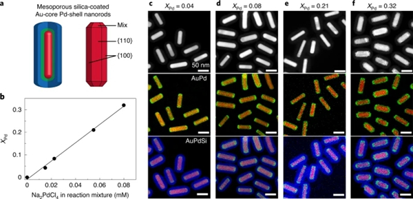图 1 具有可调Pd含量和壳厚度的单分散Au@Pd@SiO2 NRs