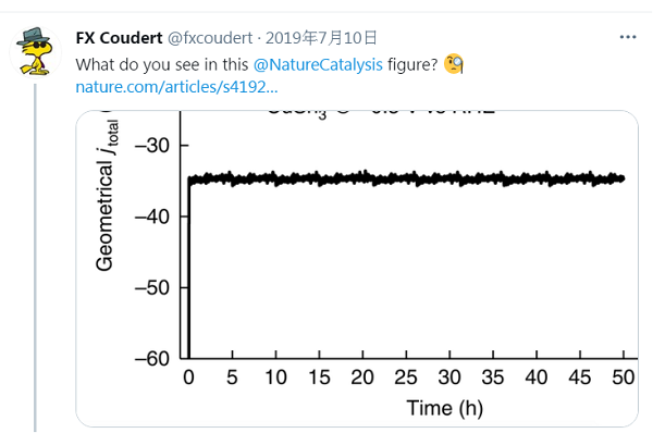 催化剂性能无法同原始论文报道值相比,或者催化剂性能并不稳定,衰减很快;至于周期性噪声究竟是仪器连接和测试问题,还是人为伪造数据问题,无从查证,因为原始数据丢失了。