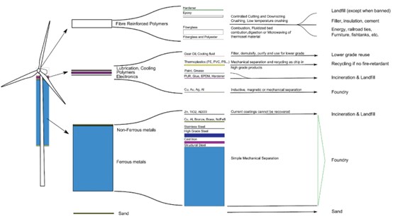 本综述的目的是介绍复合风力发电机叶片再生中前沿技术。第一节阐述了风能和复合风力发电机叶片的一些一般概念。第二节主要分析了复合层压材料最重要的再生方式。第三节介绍了直接运用于废复合叶片的再生工艺。考虑到复合叶片再生中的实际困难,第四节中尤其关注开发可再生性较高的复合结构的创新解决办法,而且给出了改性热固性复合物、热塑性层压材料和天然纤维增强复合物的一些实例。最后一节总结了复合风力发电机叶片再生的关键方面和未来展望。
