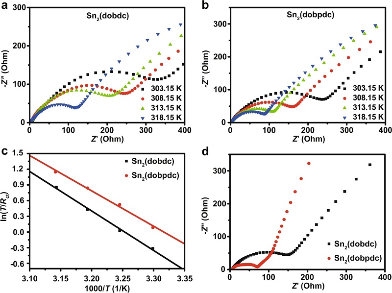 (a-b)Sn2(dobdc)和Sn2(dobpdc)的EIS;