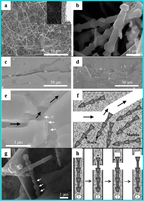 图 13. SiCNW及其增韧涂层试样微结构,以及相关增韧机理
