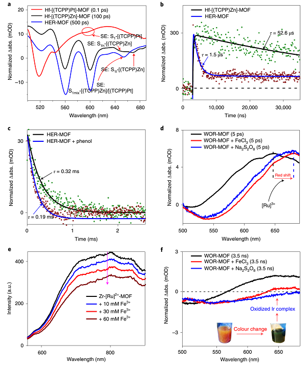 图2 HER-MOF和WOR-MOF的瞬态吸收光谱