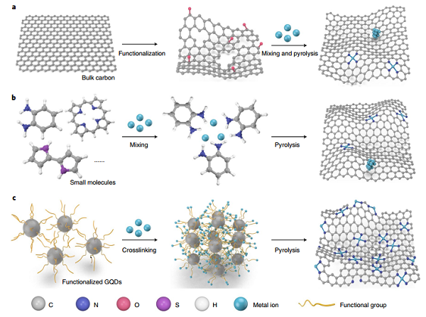 图1|使用不同策略的单原子催化剂合成过程示意图。