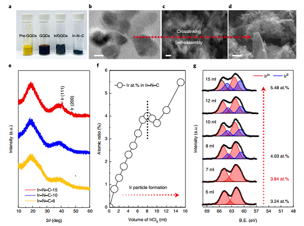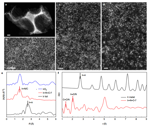 图2|原子分散铱催化剂的合成和表征,铱含量约为41 wt%和3.84 at.%。