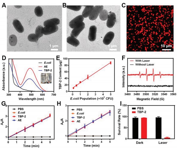 C)AE 的荧光图像,表明 TBP-2 成功加载到这些细菌中