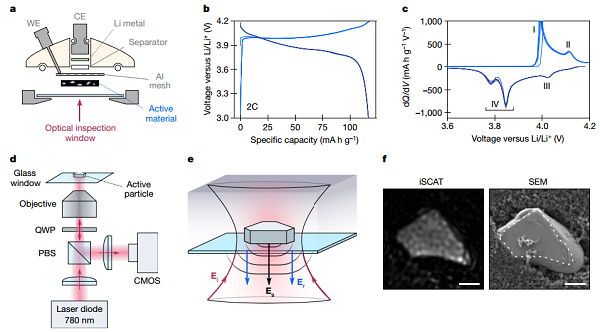 图1|LCO电极的电化学性能和干涉散射显微镜。