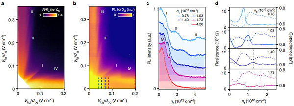 图二、器件D1在4K电子掺杂状态下的电压相关反射率和PL光谱