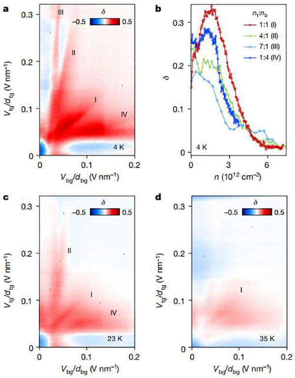 今日,美国哈佛大学Hongkun Park和Eugene Demler(共同通讯作者)报道了在原子级薄的过渡金属卤化物异质结构中观察双层维格纳晶体,该结构由由六角氮化硼分离的两个MoSe2单层组成。作者在两个MoSe2的对称 (1:1) 和非对称 (3:1、4:1 和 7:1) 电子掺杂下观察到稳健相关绝缘状态的光学特征低温层。将这些特征归因于由两个层锁相称的三角形电子晶格组成的双层维格纳晶体,由层间相互作用稳定。维格纳晶体非常稳定,在电子密度高达6×1012和高达40开尔文的温度下经历量子和热熔融转变。实验的结果表明,原子级薄的异质结构是用于实现多体的电子态和探测其液-固和磁性量子相位转变的高度可调的平台。相关研究成果以“Bilayer Wigner crystals in a transition metal dichalcogenide heterostructure”为题发表在Nature上。