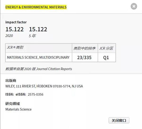 Energy & Environmental Materials IF=15.122
