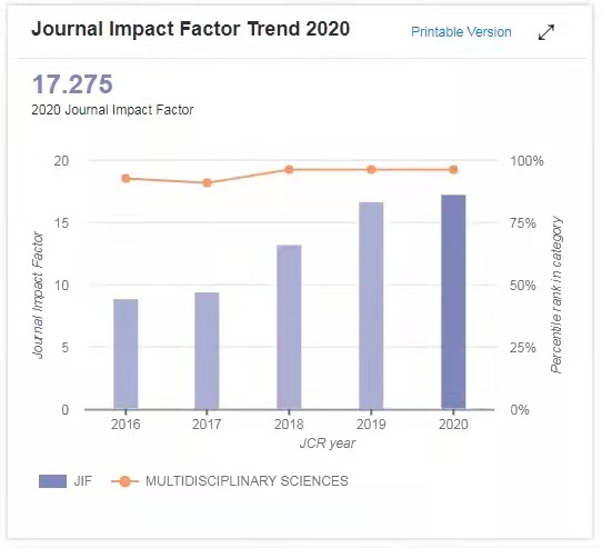 Science Bulletin是中科院、国自然基金委、Elsevier联合出版的自然科学综合性期刊,主编为王恩哥院士,前身是Chinese Science Bulletin,2015年改为现名和半月刊,Science Bulletin以研究论文(Article)为主,达到总发文量50-60%。2020年今年影响因子增长至11.780,为创刊以来首次破10。2020期刊总被引频次为8832。